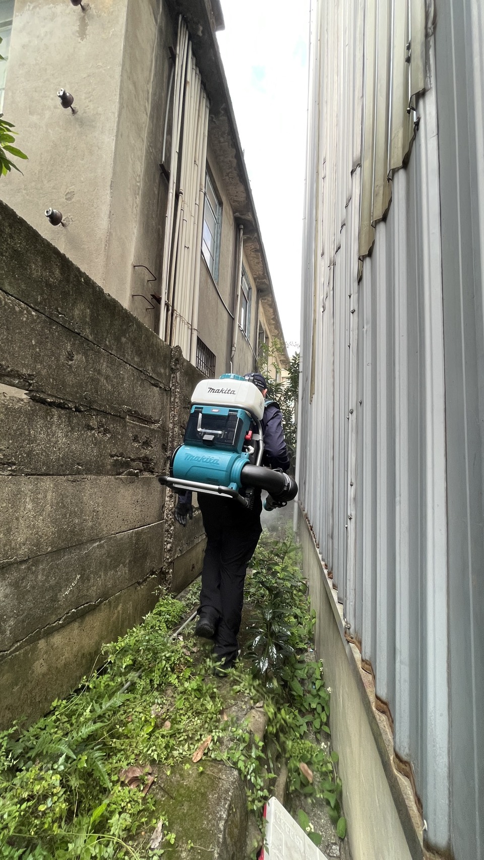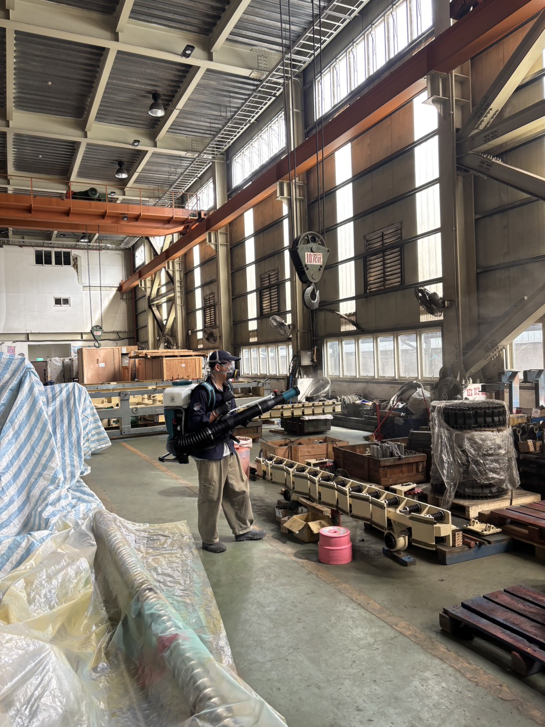 新北土城-廠區除蟲滅鼠工程 簡介: 金屬工廠業者委託菖蒔執行噴灑藥劑除蟲及撒播老鼠餌劑工程工法: 除蟲工程於產線、停車場、戶外等空曠區域使用鼓風式噴霧機做護罩式噴灑 於辦公室、會議室、茶水間等室內空間使用鋰電池噴霧機做帶狀殘效噴灑及隙縫灌注 老鼠餌劑使用抗凝血藥劑投放於廠區周遭、垃圾回收區及水溝內成效: 客戶滿意此次工程 施工圖片 回上一頁